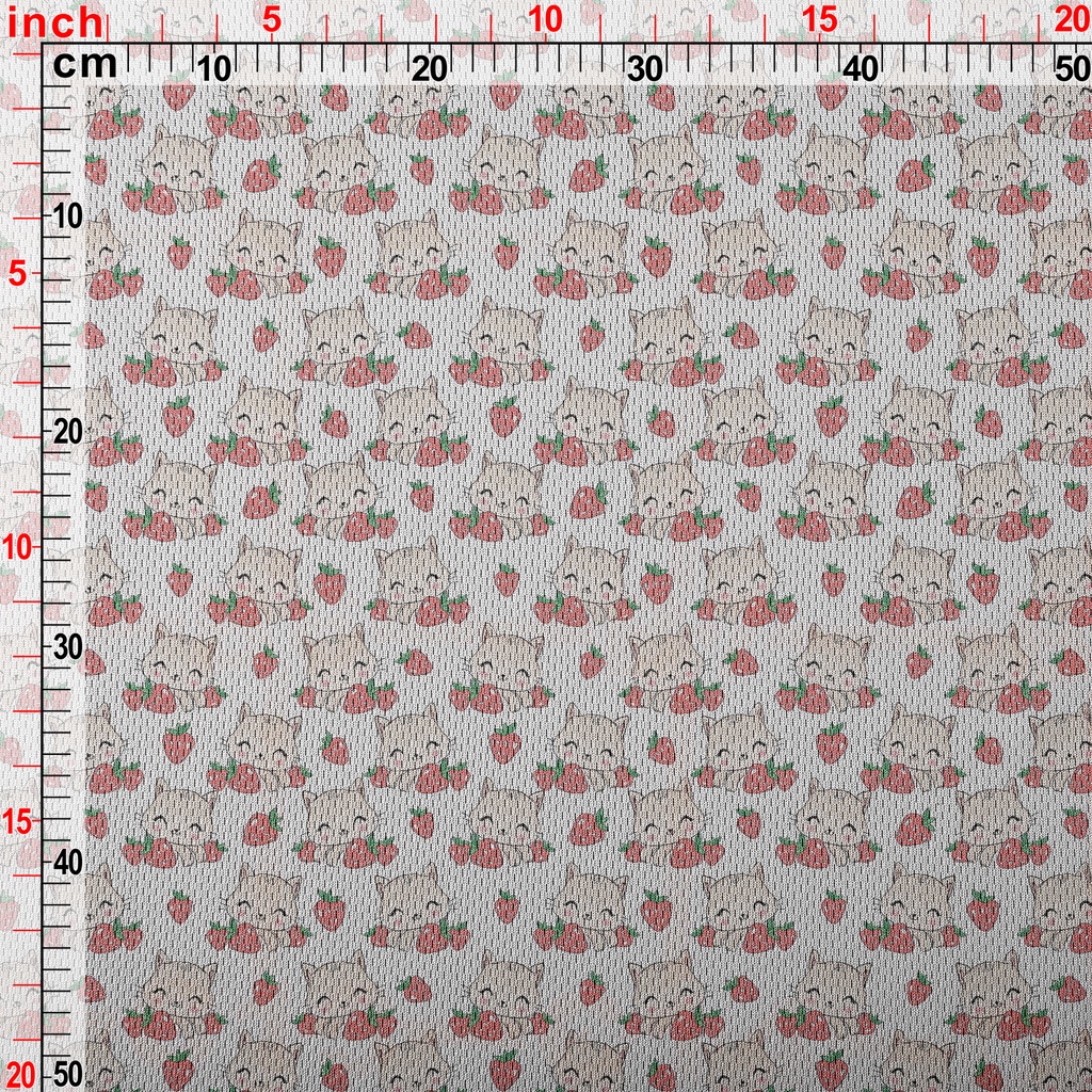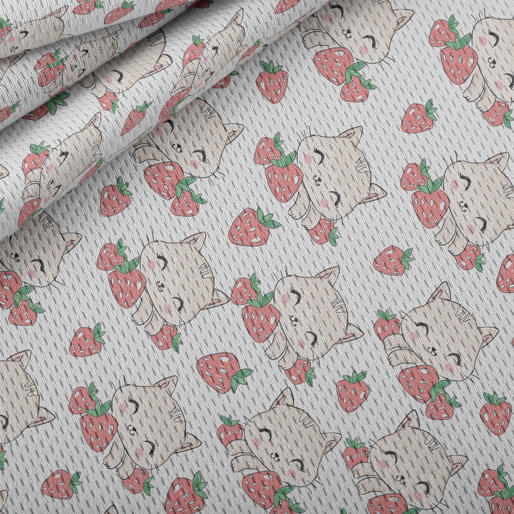 微笑貓咪與草莓鳥眼布(幅寬160公分)