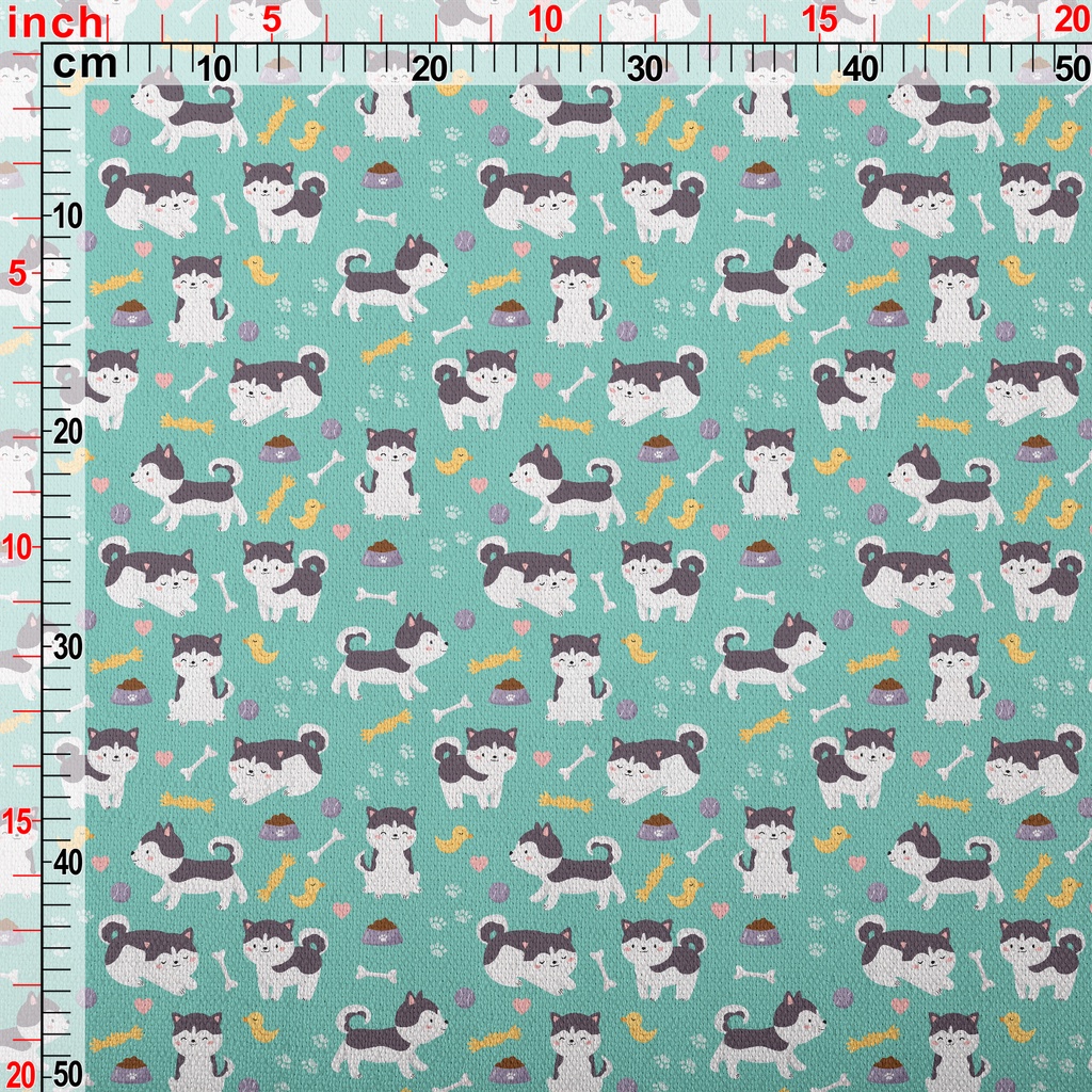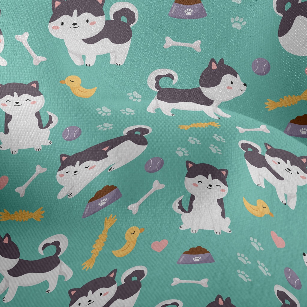哈士奇和鴨子玩具竹節麻(幅寬150公分)