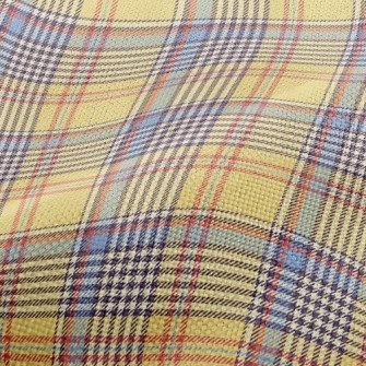 黃藍格子花紋仿棉布(幅寬150公分)