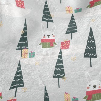 兔子與聖誕禮物水晶絨(幅寬160公分)
