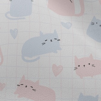 格子與貓咪竹節麻(幅寬150公分)