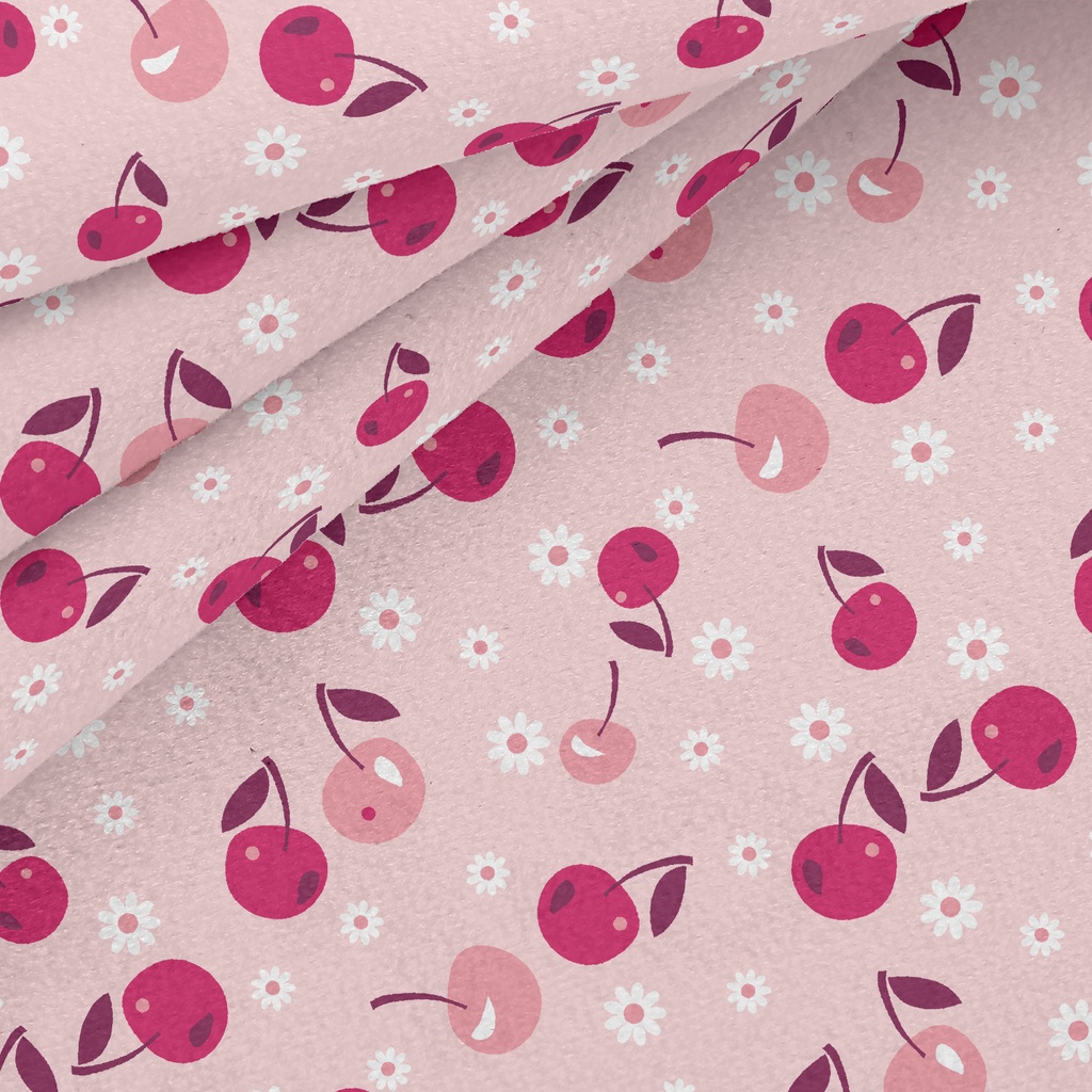 櫻桃與小花水晶絨(幅寬160公分)