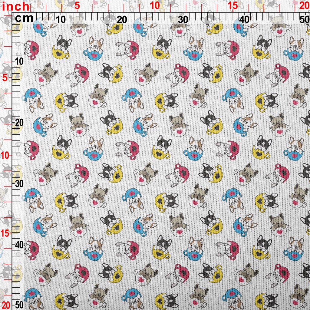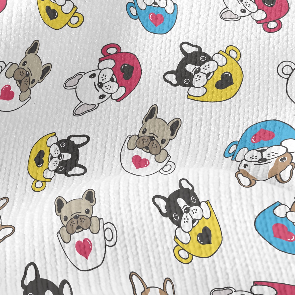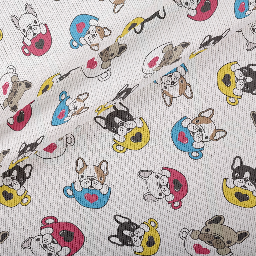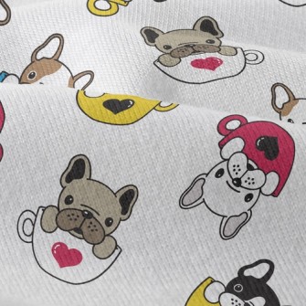 咖啡杯法國鬥牛犬仿毛衣布(幅寬150公分)