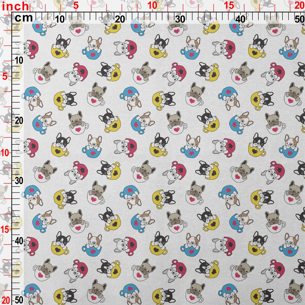 咖啡杯法國鬥牛犬春亞紡(幅寬160公分)