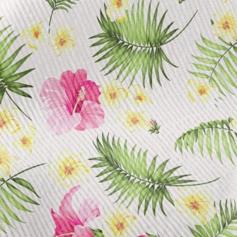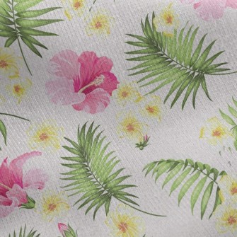 盛開的扶桑花竹節麻(幅寬150公分)