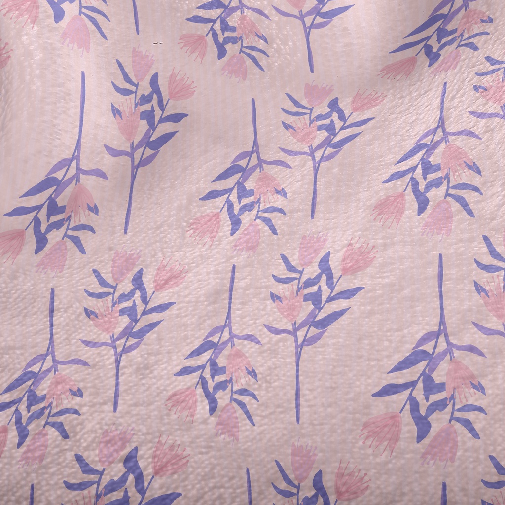 粉色花朵紫葉花束法蘭絨(幅寬150公分)