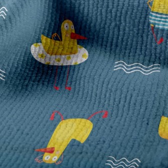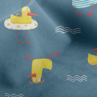 玩耍游泳小鴨竹節麻(幅寬150公分)