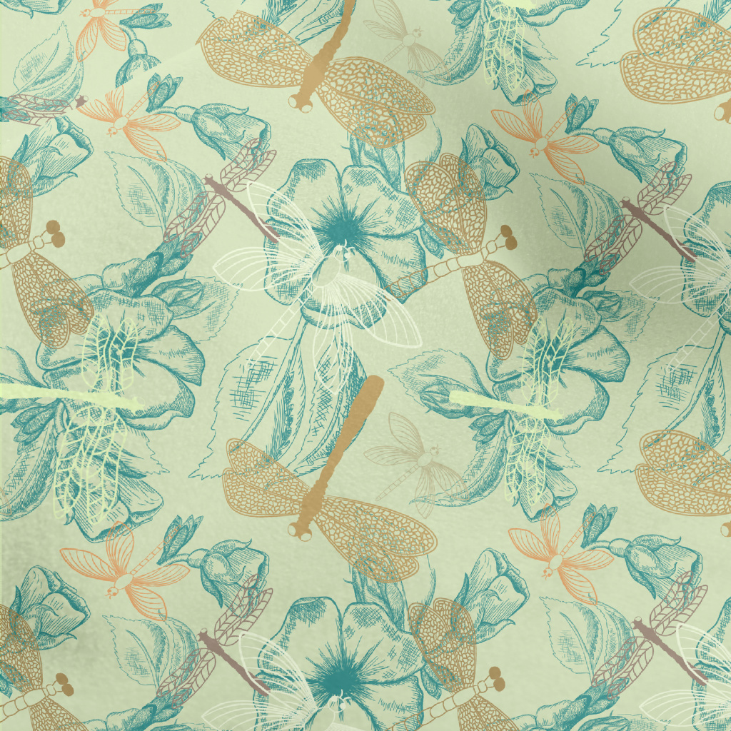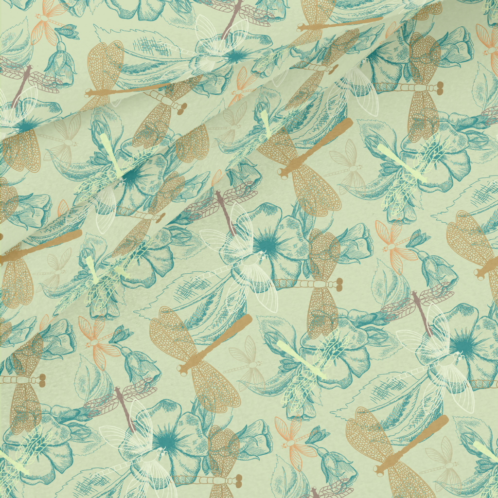 花朵與蜻蜓水晶絨(幅寬160公分)