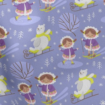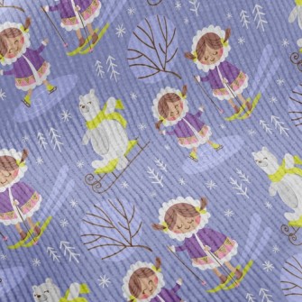 滑雪女孩和熊水晶絨(幅寬160公分)