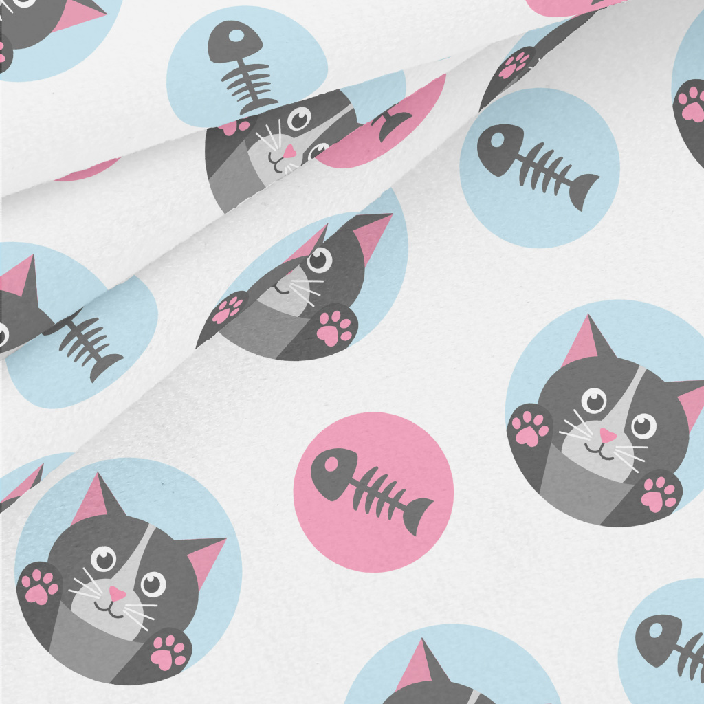 貓和魚骨頭水晶絨(幅寬160公分)
