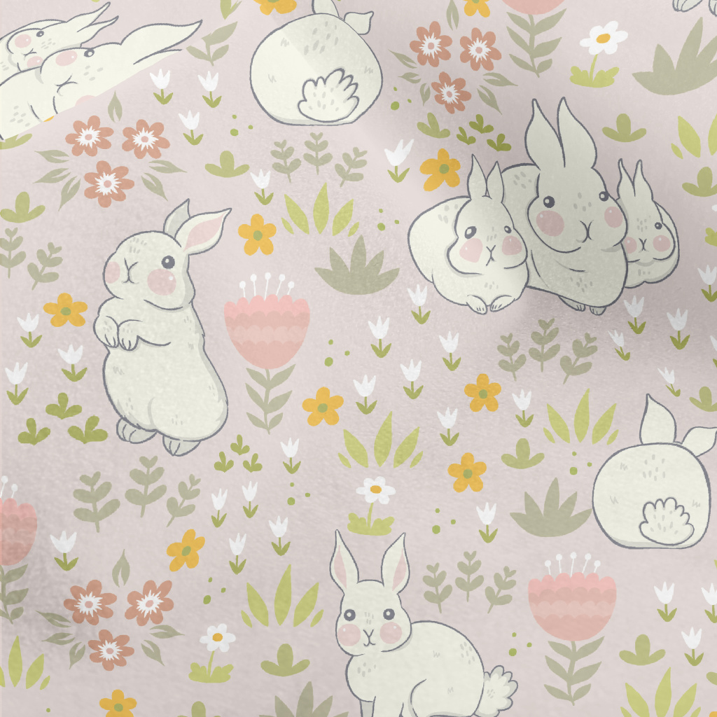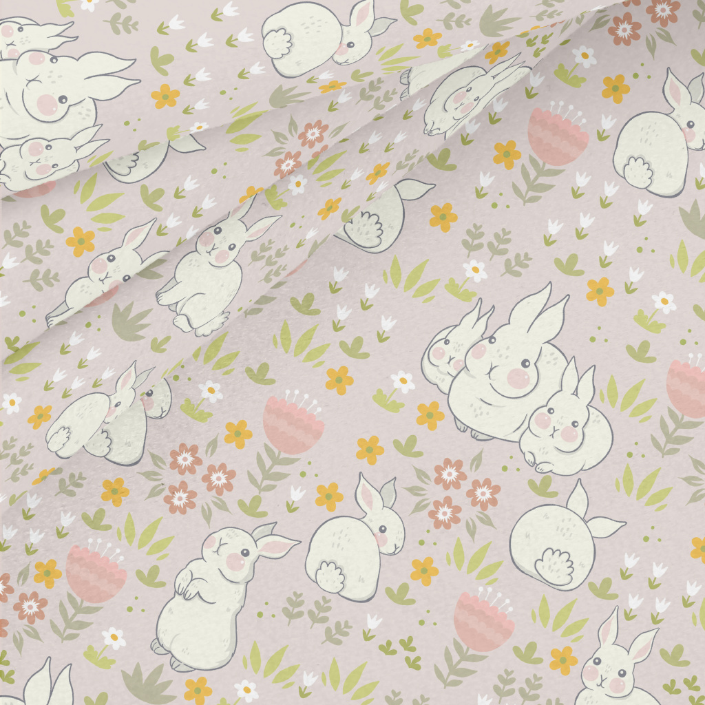 春天兔子家族水晶絨(幅寬160公分)