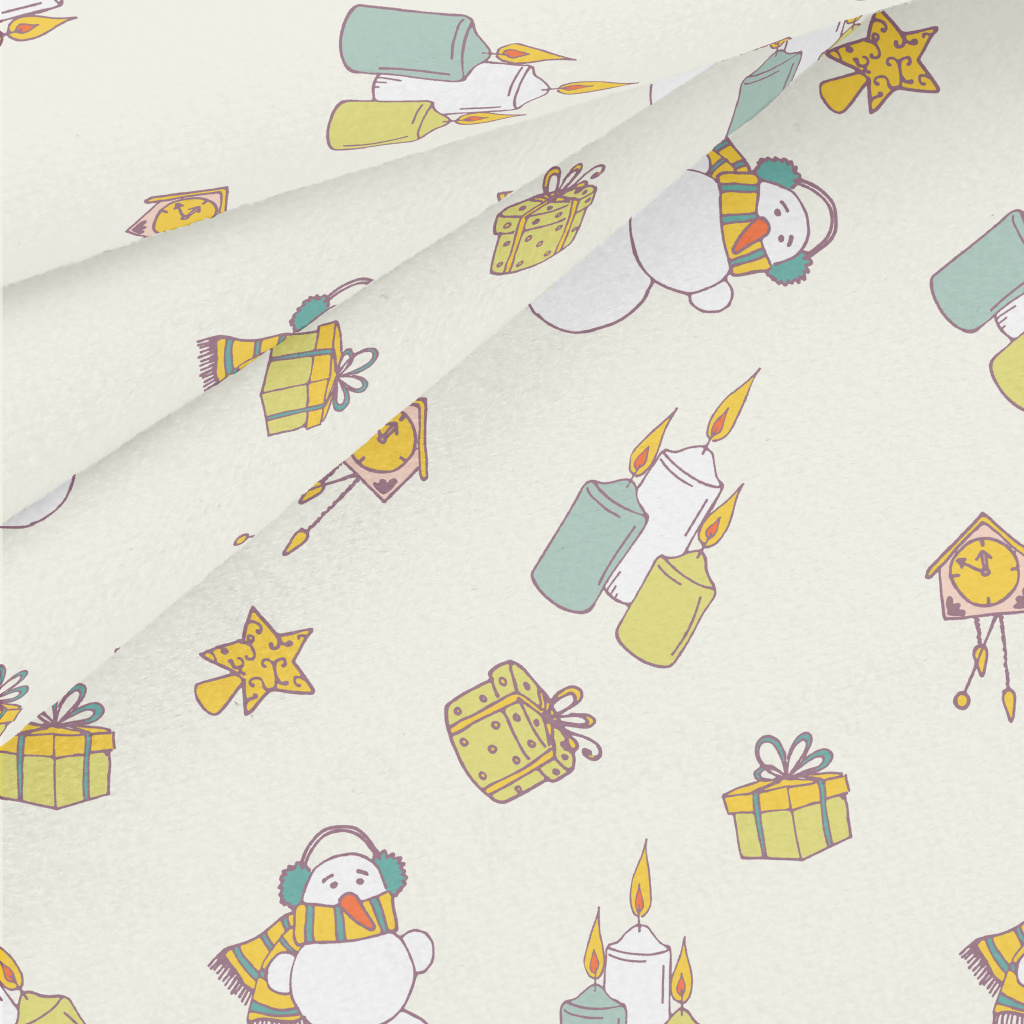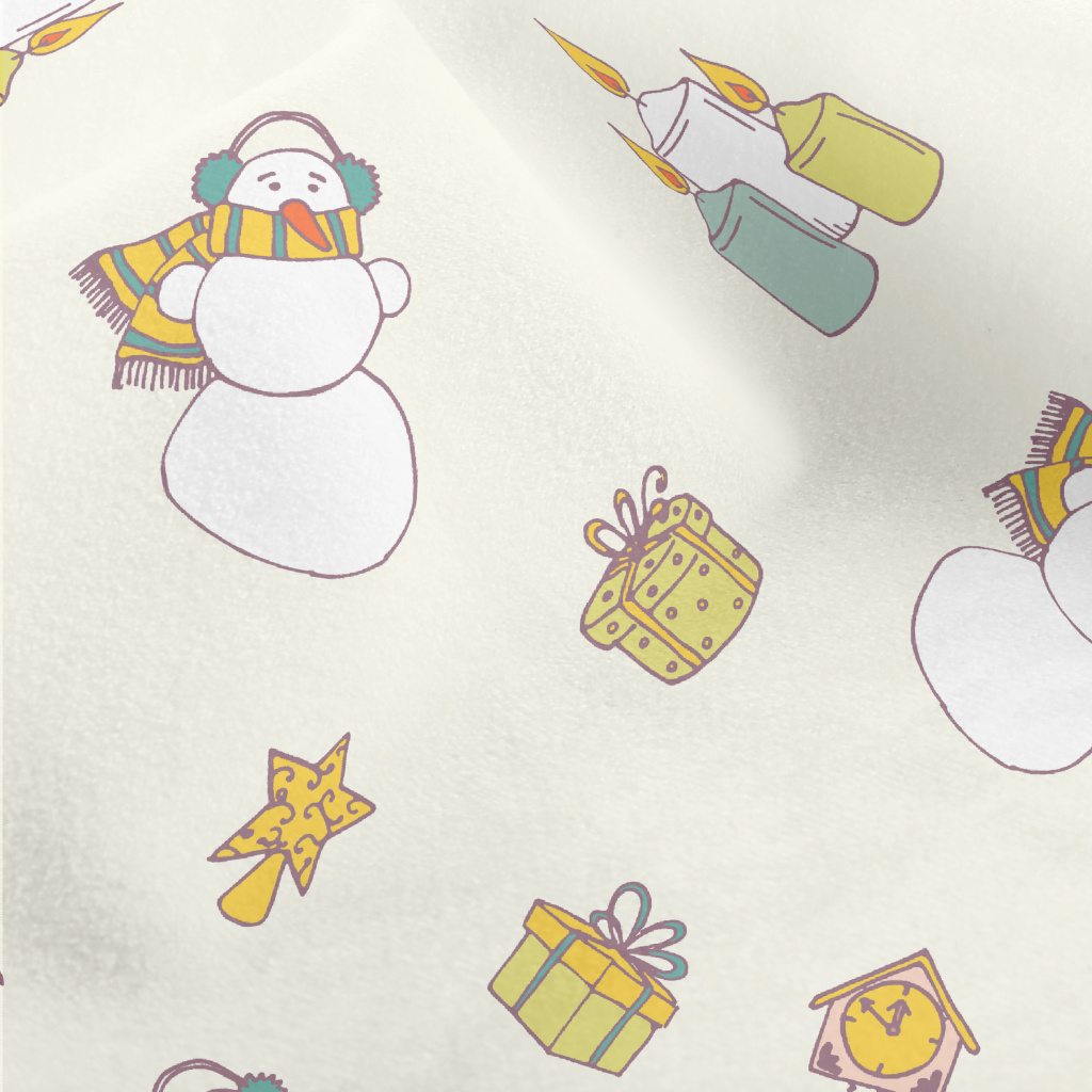 雪人禮物蠟燭水晶絨(幅寬160公分)