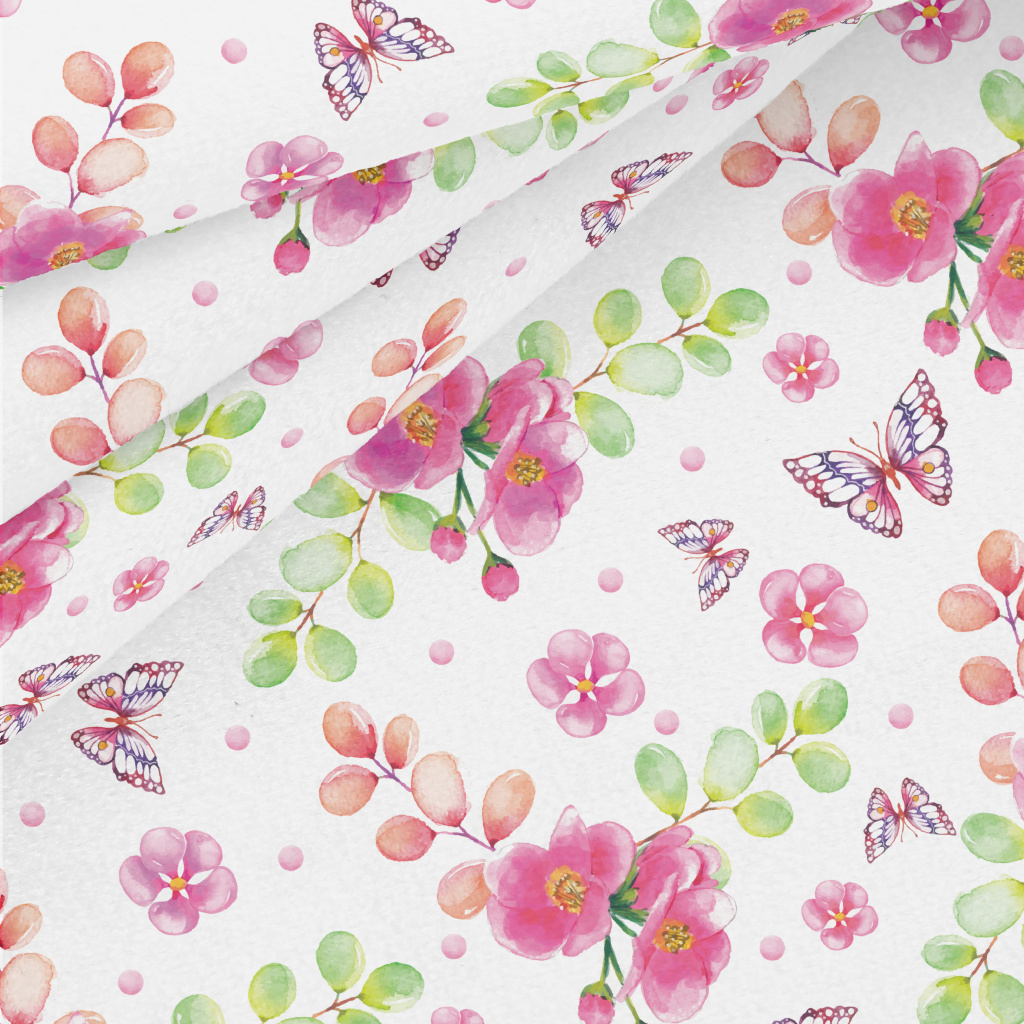 蝴蝶與紅花水晶絨(幅寬160公分)
