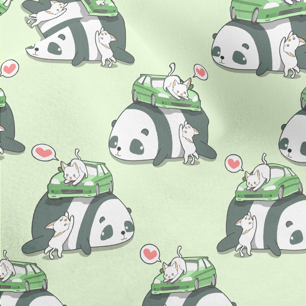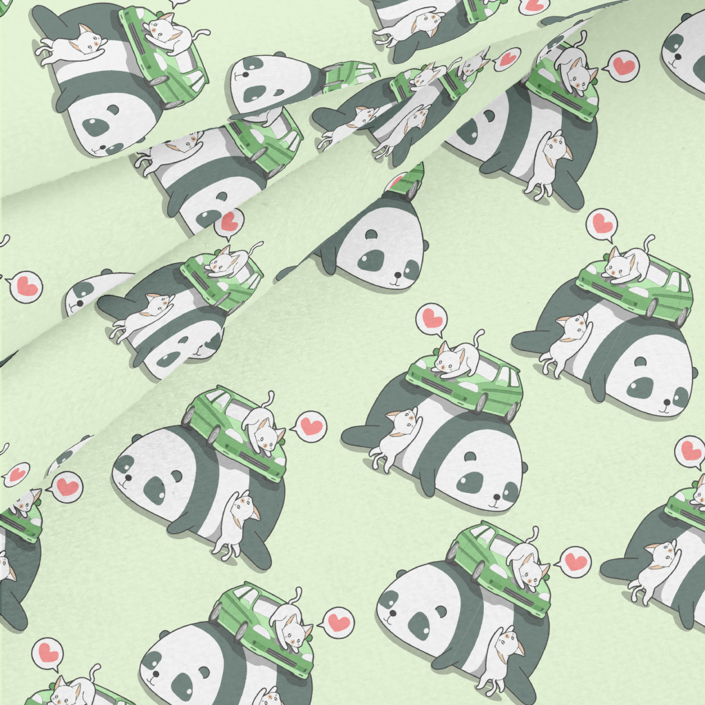 玩耍貓咪與貓熊車水晶絨(幅寬160公分)