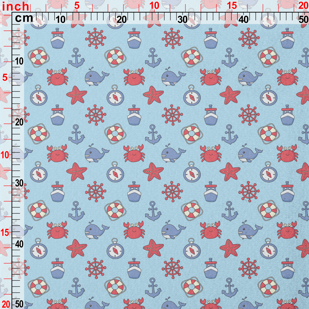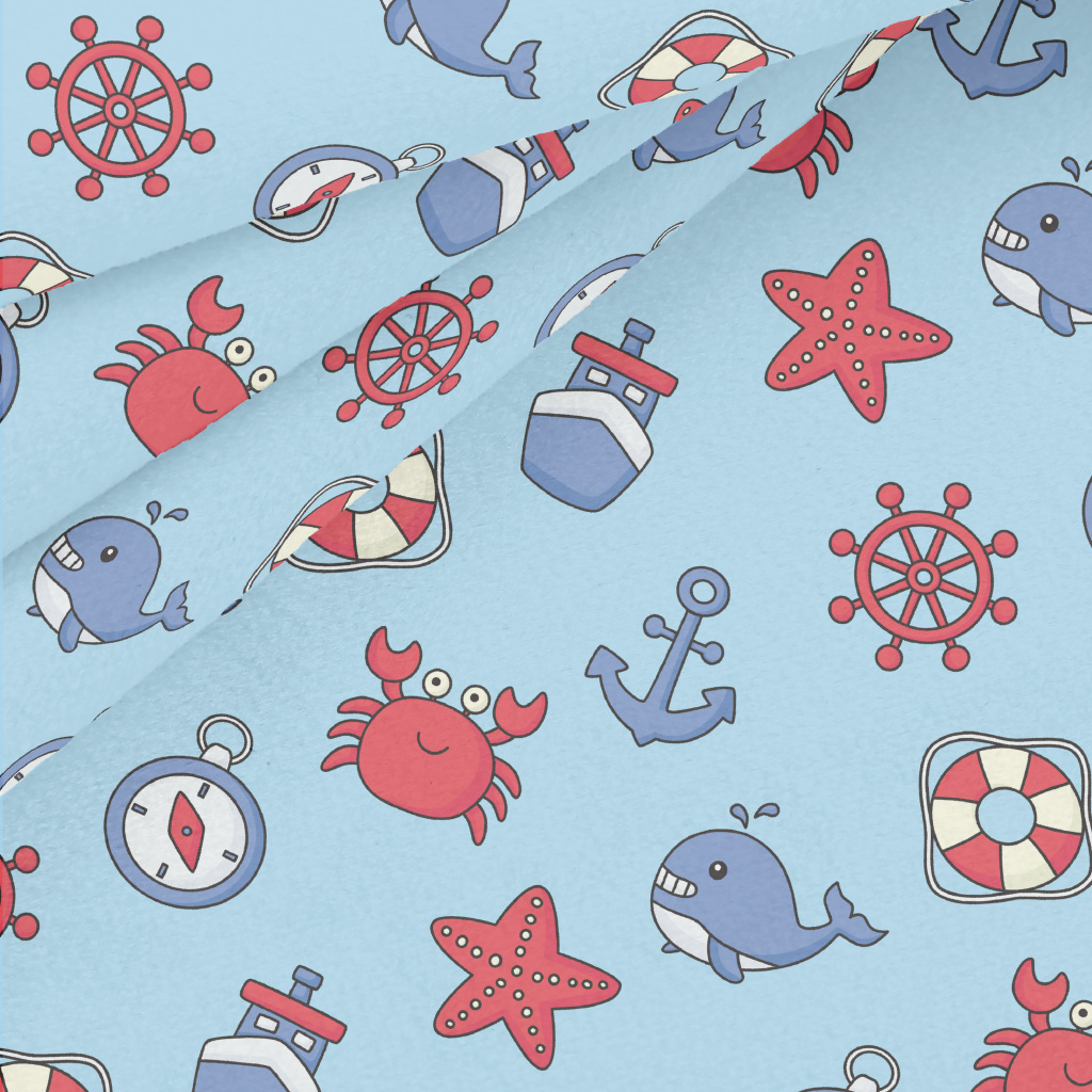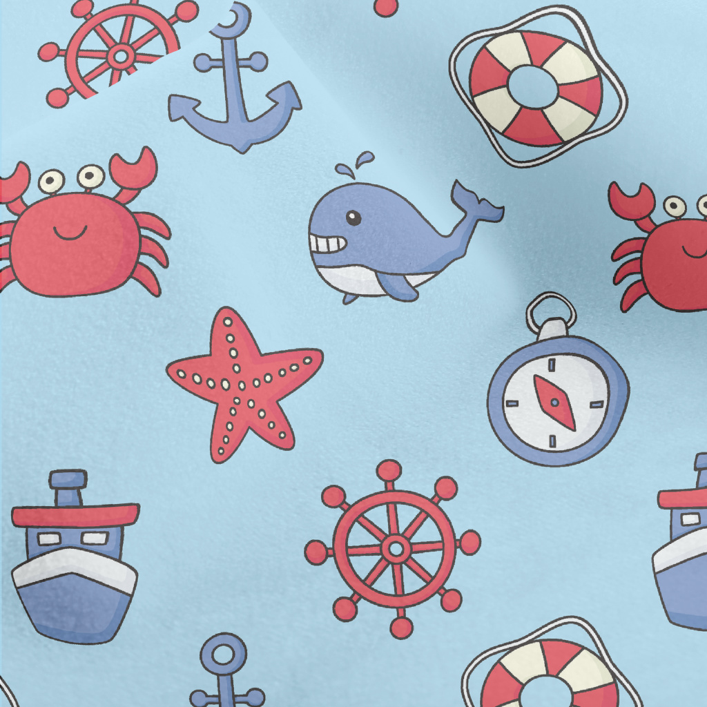 俏皮螃蟹與鯨魚水晶絨(幅寬160公分)