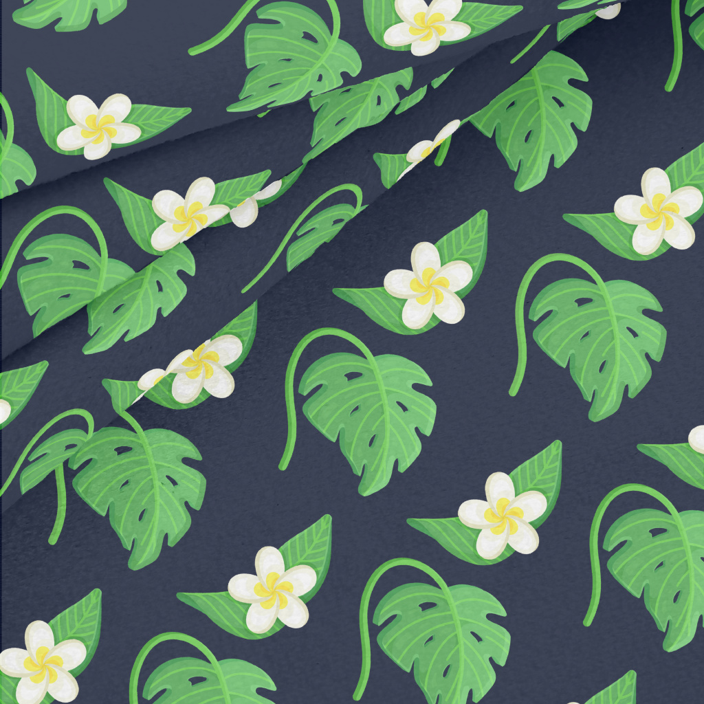 雞蛋花熱帶葉子水晶絨(幅寬160公分)