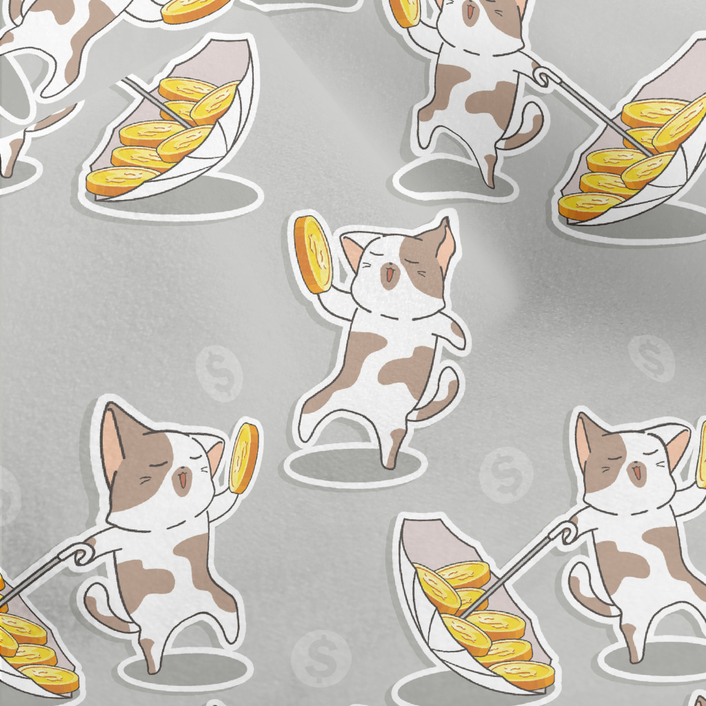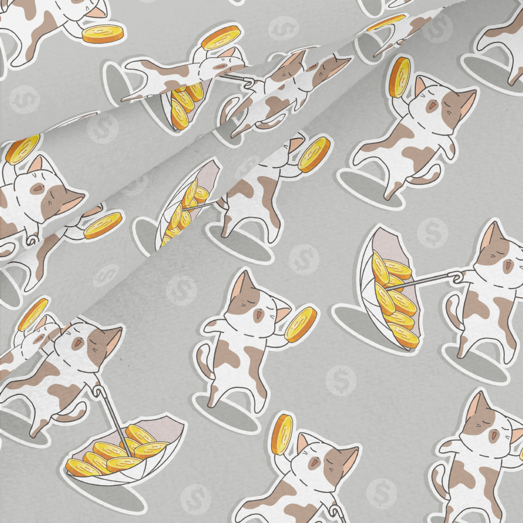 跳舞錢幣貓咪水晶絨(幅寬160公分)