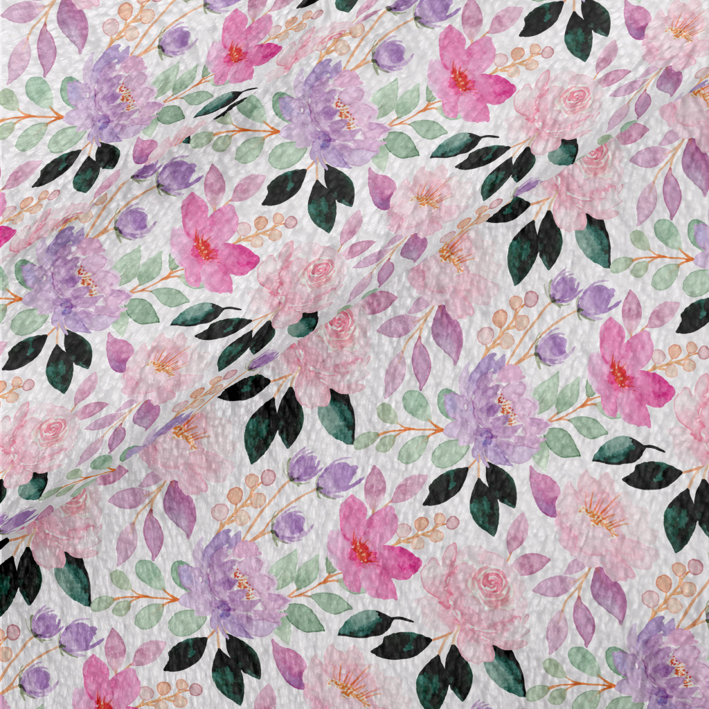 柔美粉紅紫色花法蘭絨(幅寬150公分)