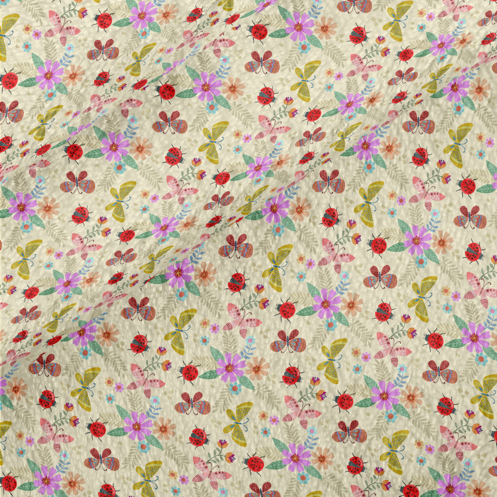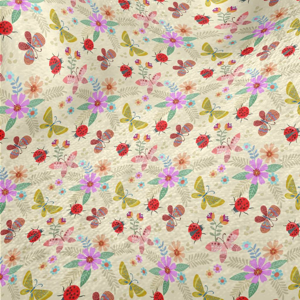 五顏六色花和蝴蝶法蘭絨(幅寬150公分)