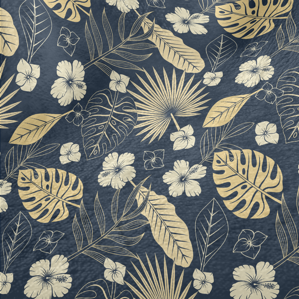 優雅熱帶樹葉花朵法蘭絨(幅寬150公分)