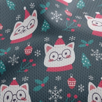 戴眼鏡聖誕貓法蘭絨(幅寬150公分)
