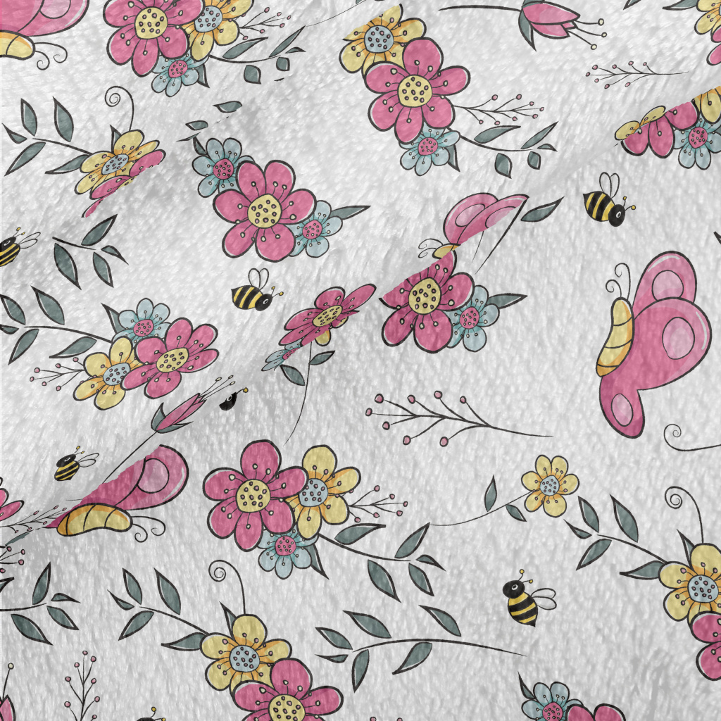 卡通蝴蝶與蜜蜂法蘭絨(幅寬150公分)