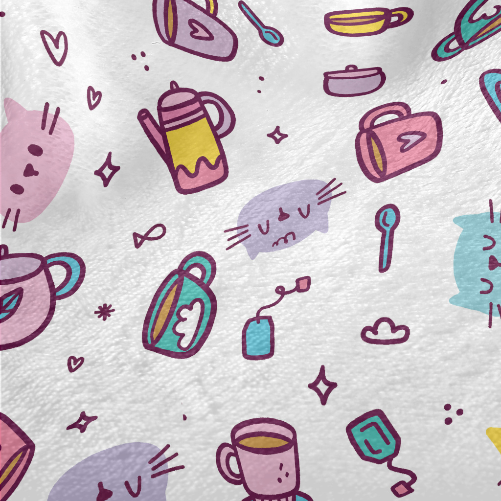 小貓家族下午茶法蘭絨(幅寬150公分)