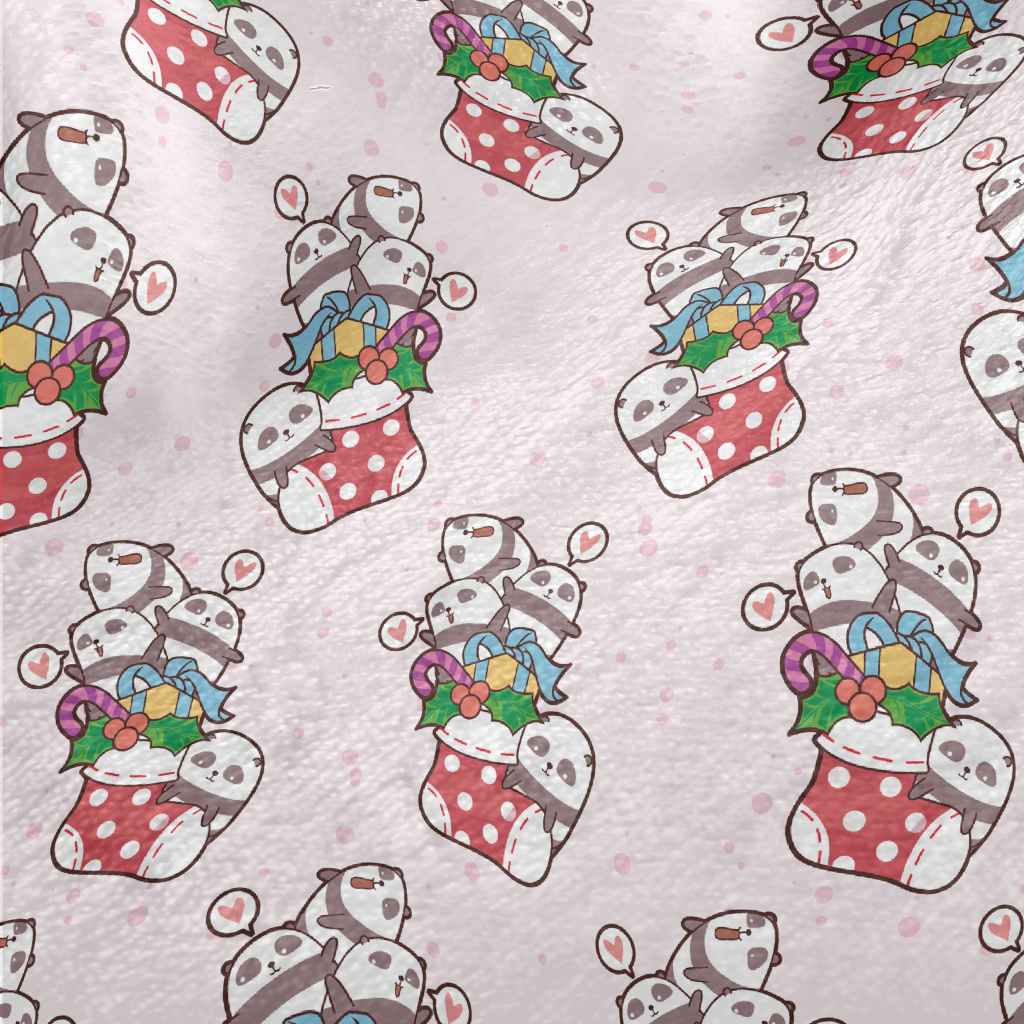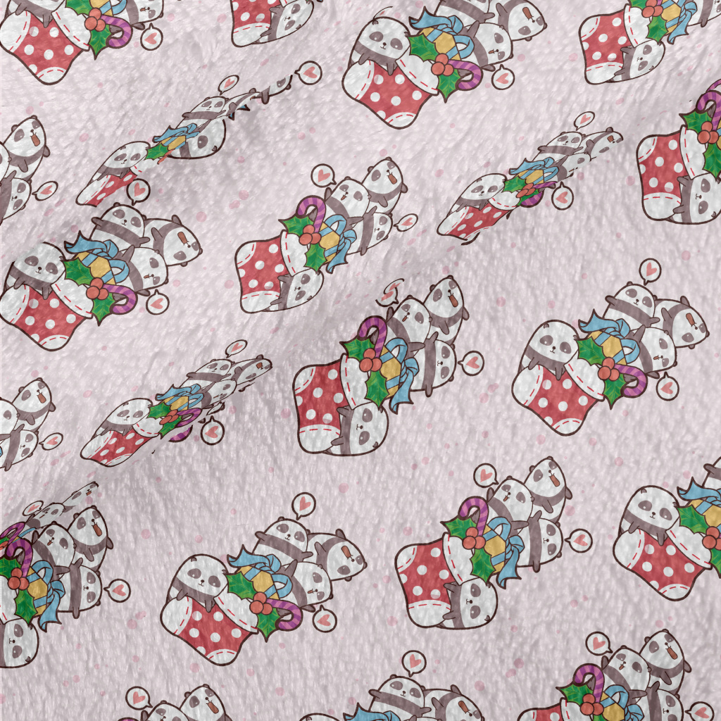 歡樂貓熊聖誕襪法蘭絨(幅寬150公分)