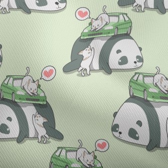 玩耍貓咪與貓熊車法蘭絨(幅寬150公分)