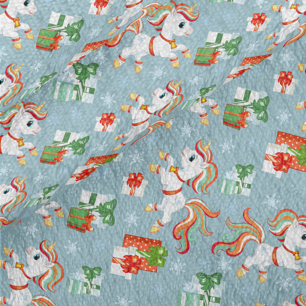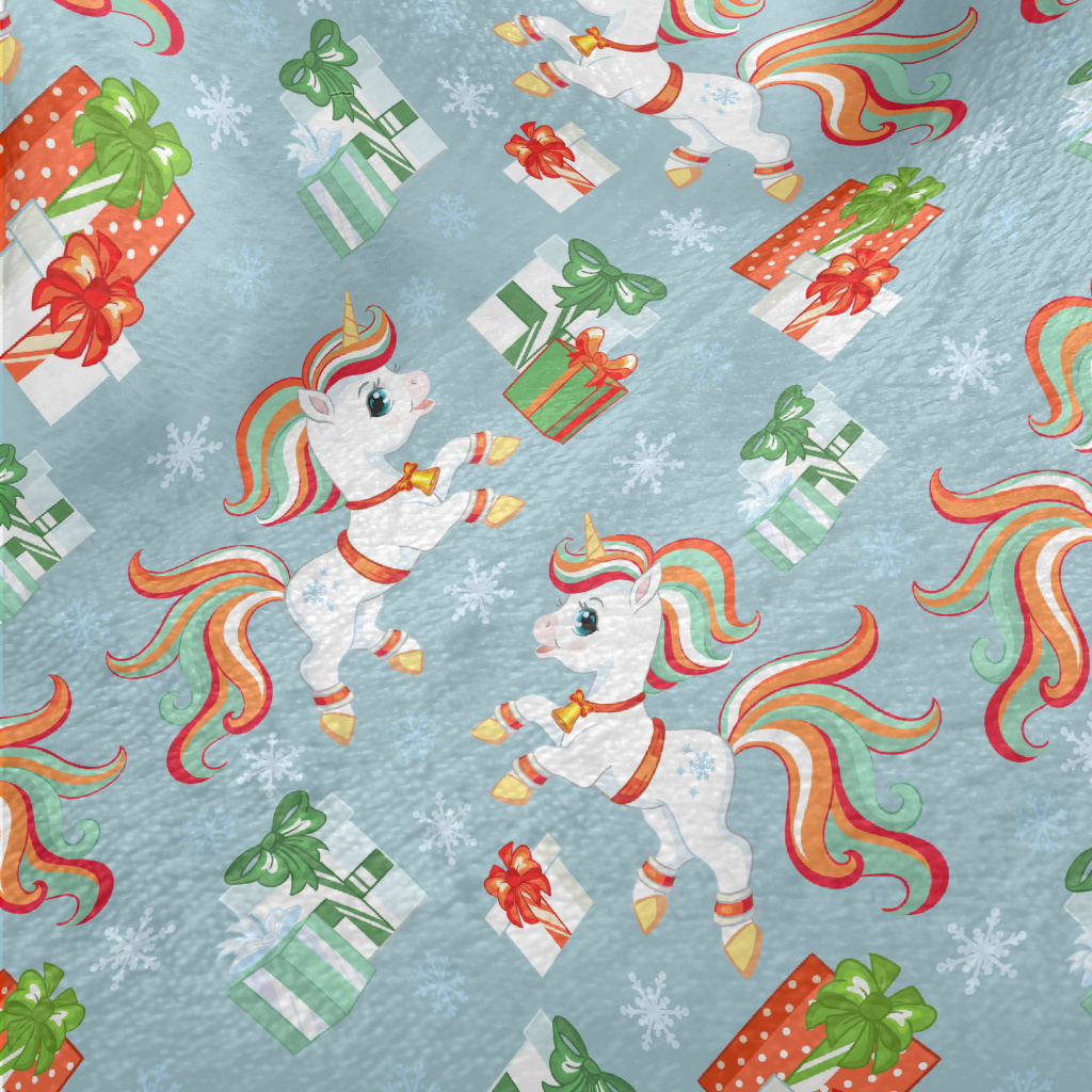 聖誕配色獨角獸法蘭絨(幅寬150公分)