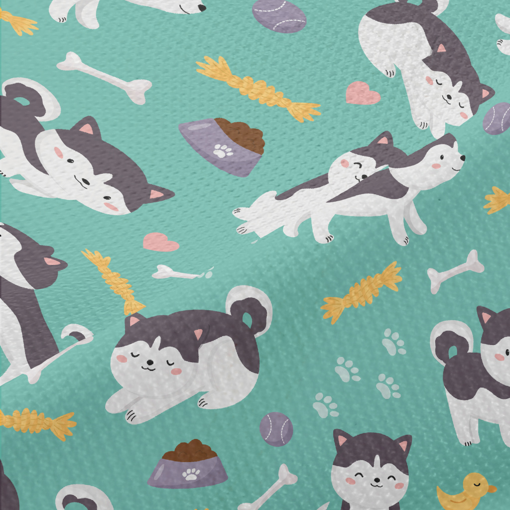 哈士奇和鴨子玩具高爾布(幅寬180公分)