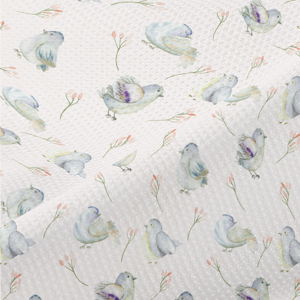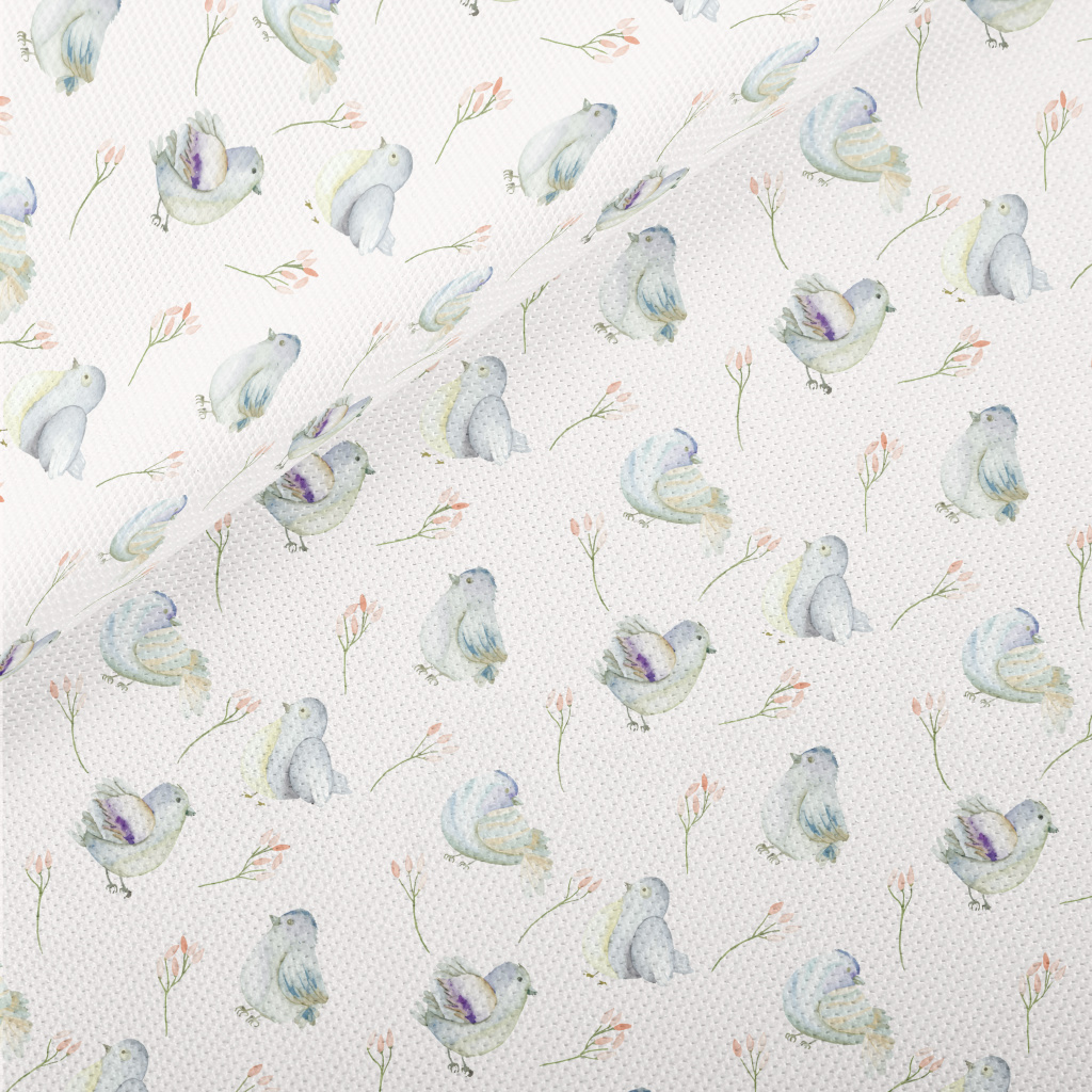 藍色小鳥和花高爾布(幅寬180公分)