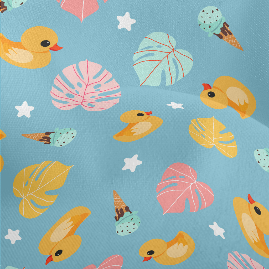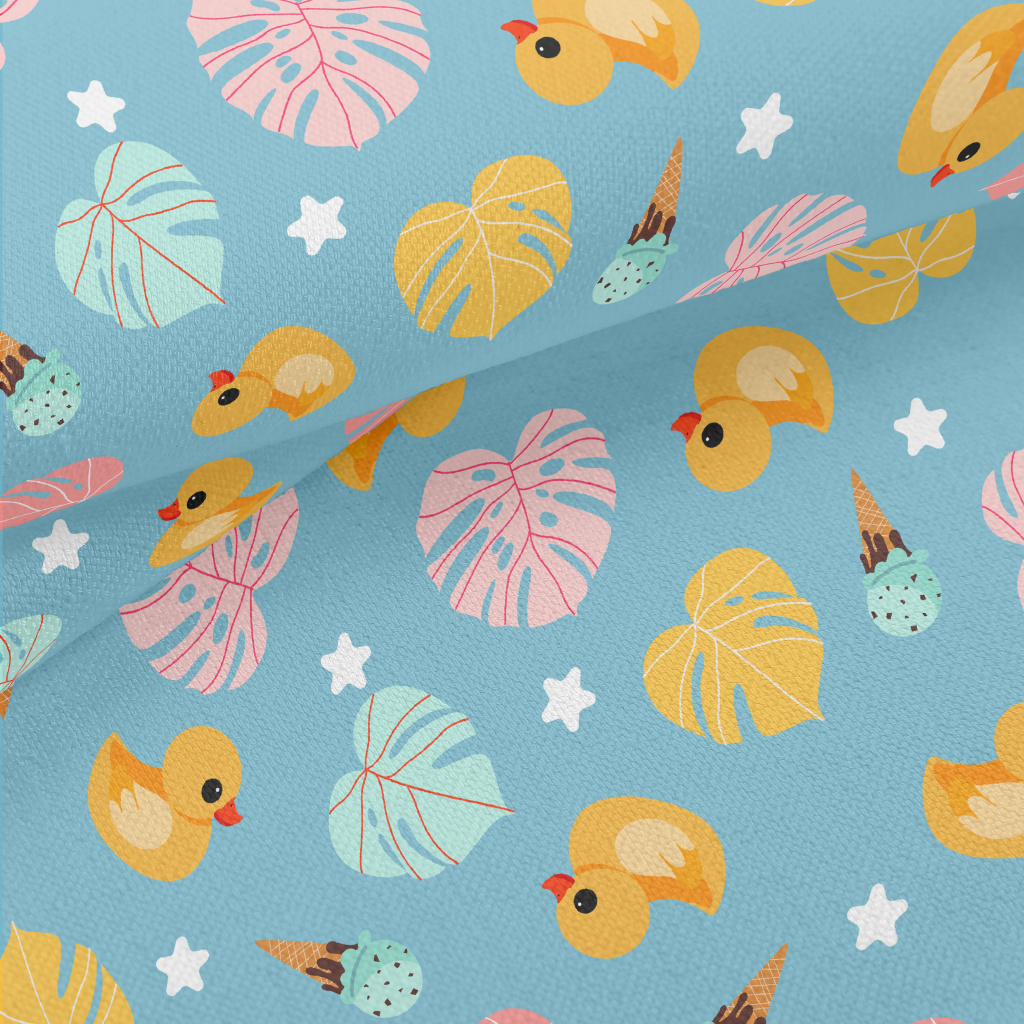 小鴨與冰淇淋竹節麻(幅寬150公分)