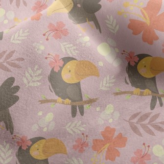 鸚鵡和花朵竹節麻(幅寬150公分)