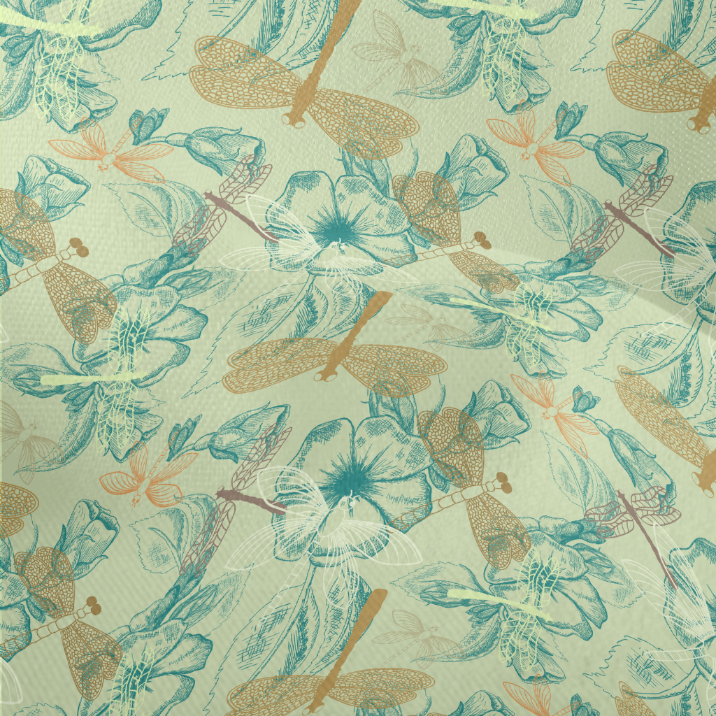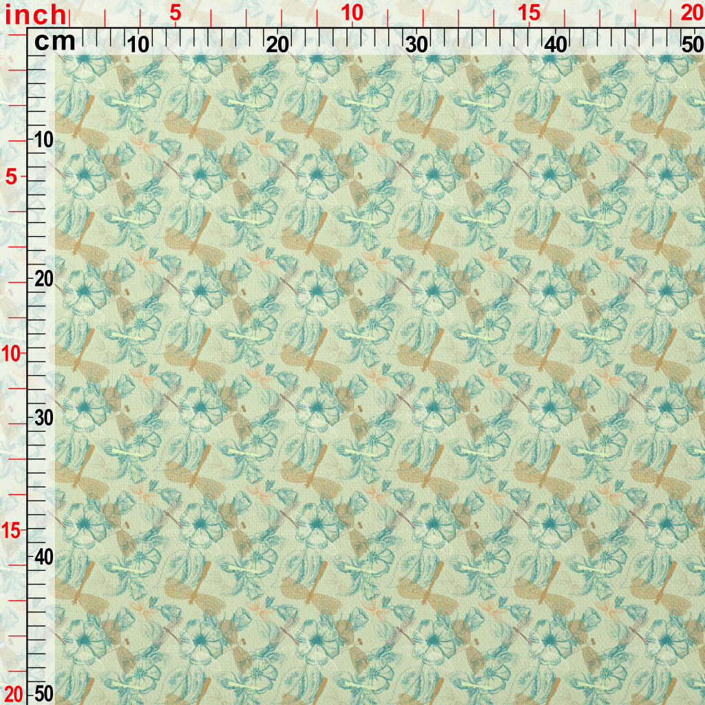 花朵與蜻蜓竹節麻(幅寬150公分)