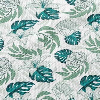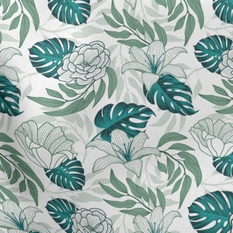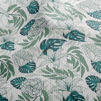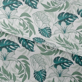 熱帶花朵與葉子竹節麻(幅寬150公分)