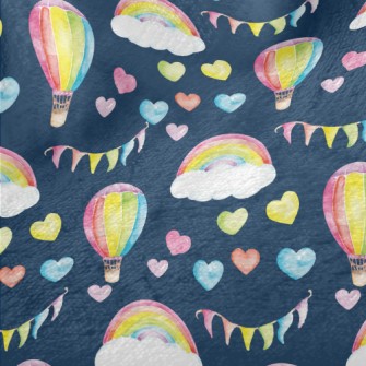 水彩心和熱氣球竹節麻(幅寬150公分)