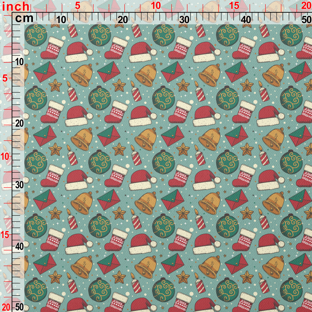 聖誕帽襪子彩球竹節麻(幅寬150公分)