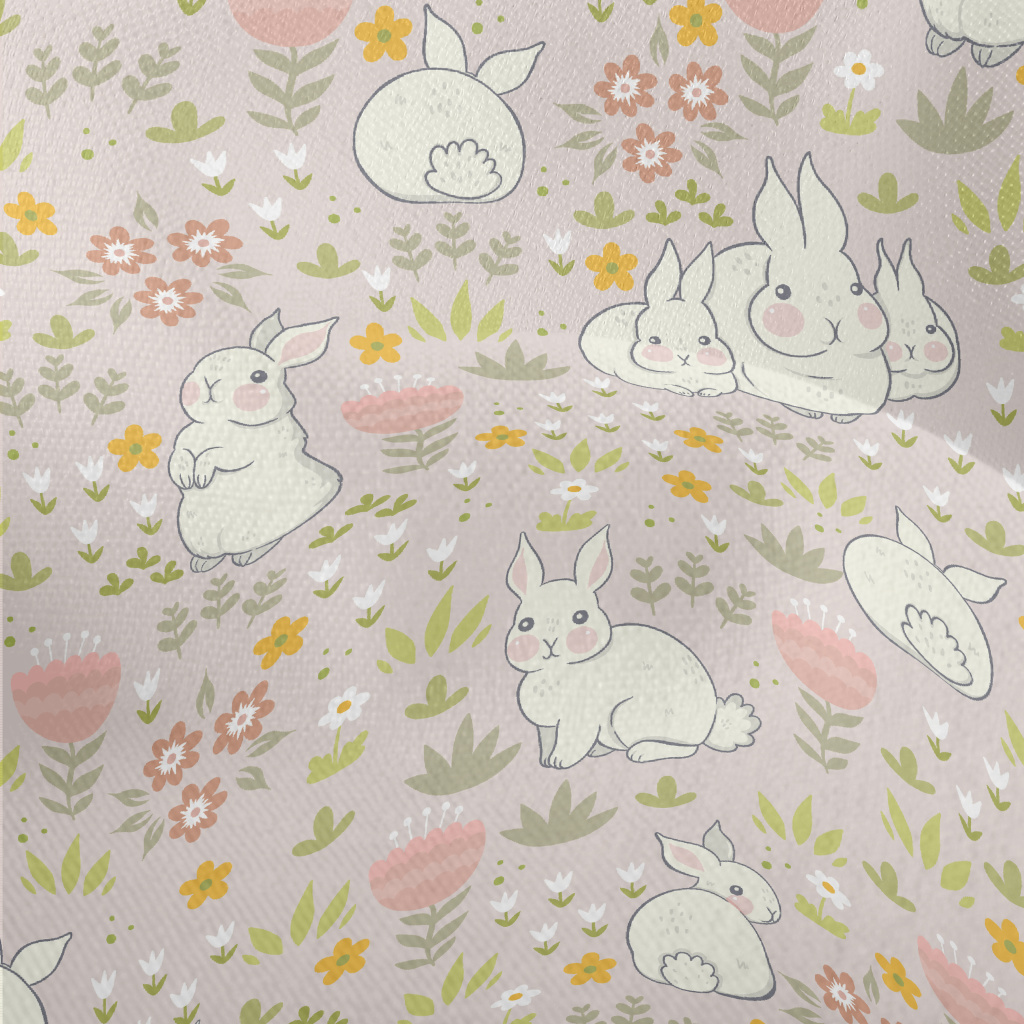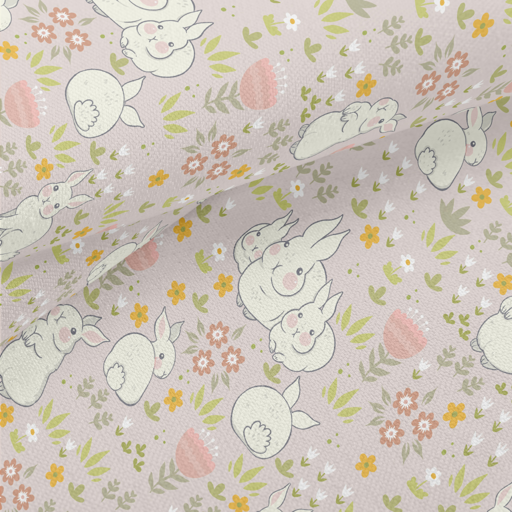 春天兔子家族竹節麻(幅寬150公分)