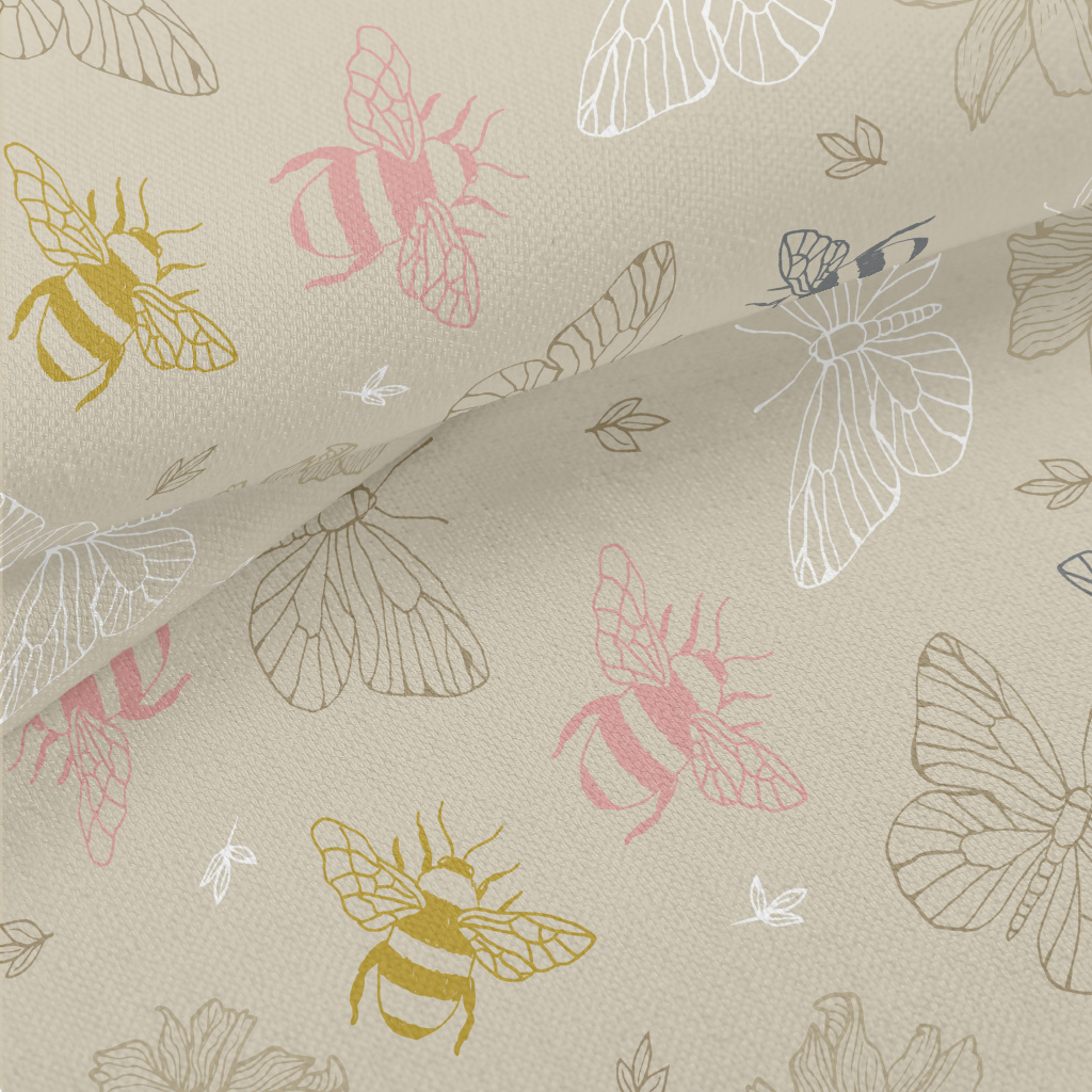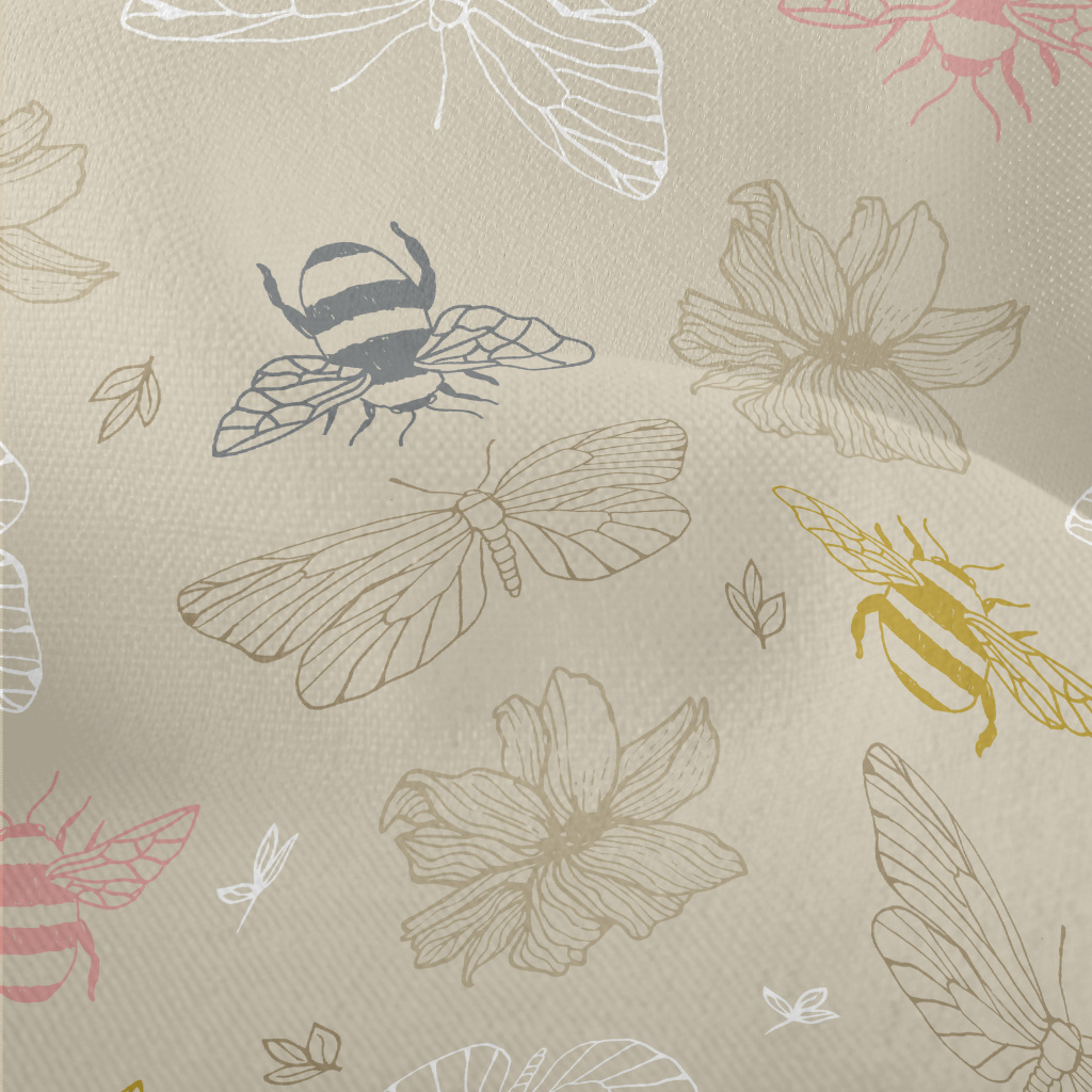 蜜蜂和蝴蝶竹節麻(幅寬150公分)