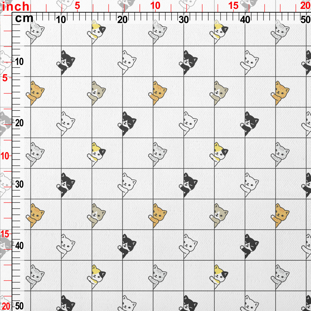小貓家族偷看竹節麻(幅寬150公分)