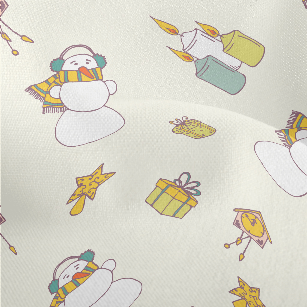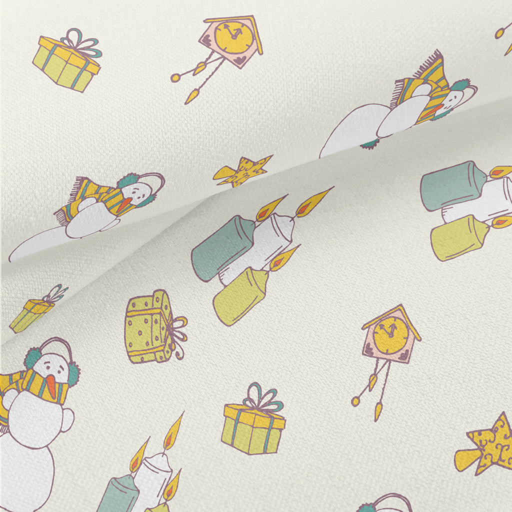 雪人禮物蠟燭竹節麻(幅寬150公分)