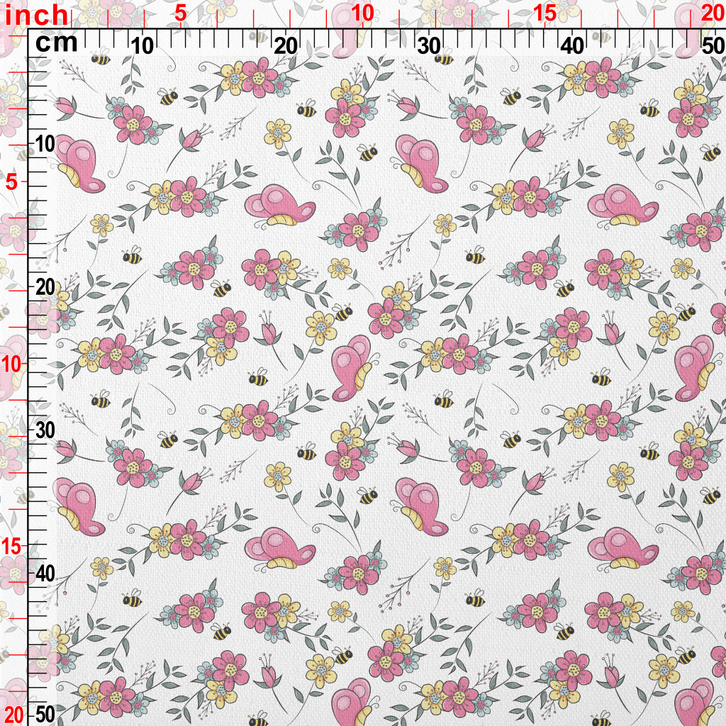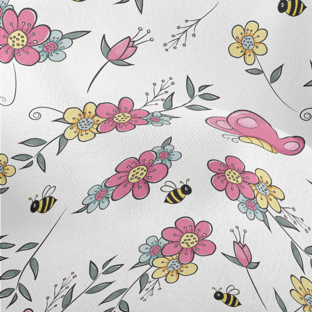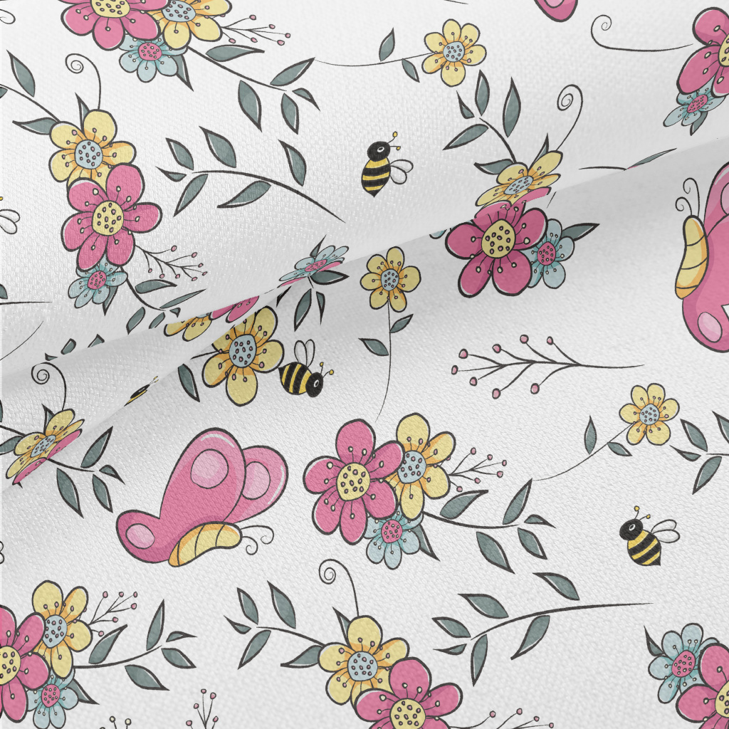 卡通蝴蝶與蜜蜂竹節麻(幅寬150公分)