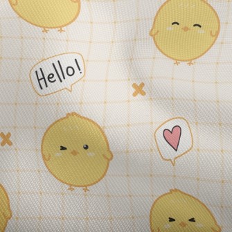 呆萌小雞打招呼竹節麻(幅寬150公分)