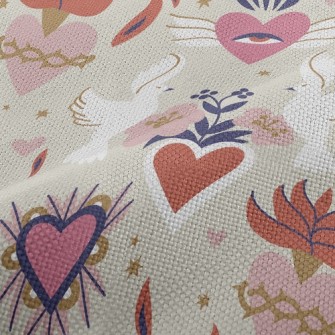 神聖白鳥圖騰竹節麻(幅寬150公分)