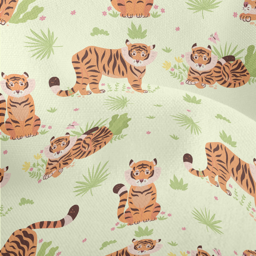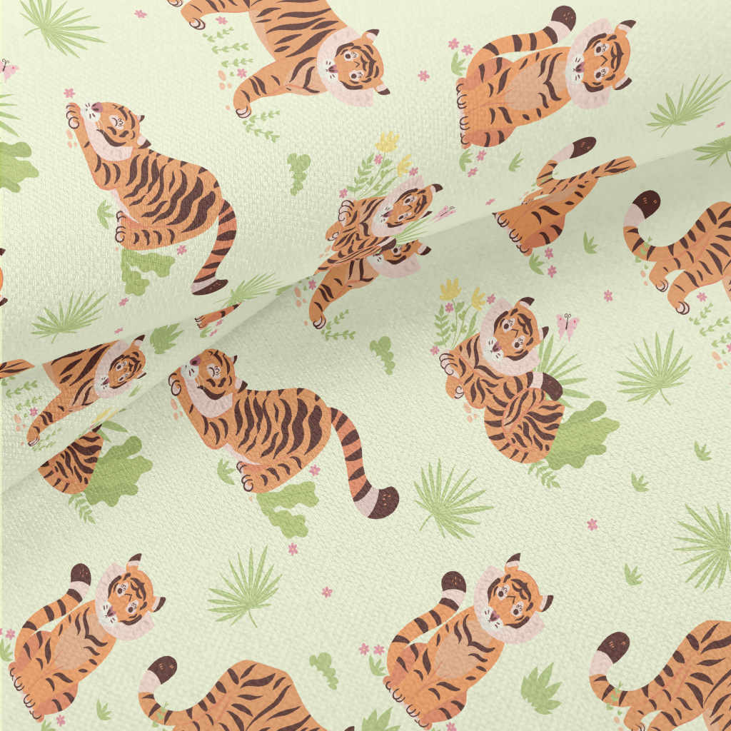 草原裡玩耍老虎竹節麻(幅寬150公分)