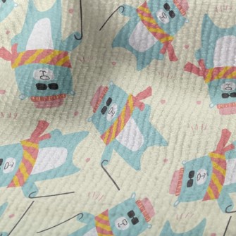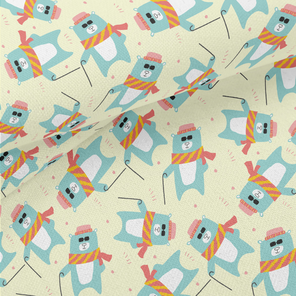 搞笑墨鏡拐杖熊竹節麻(幅寬150公分)