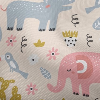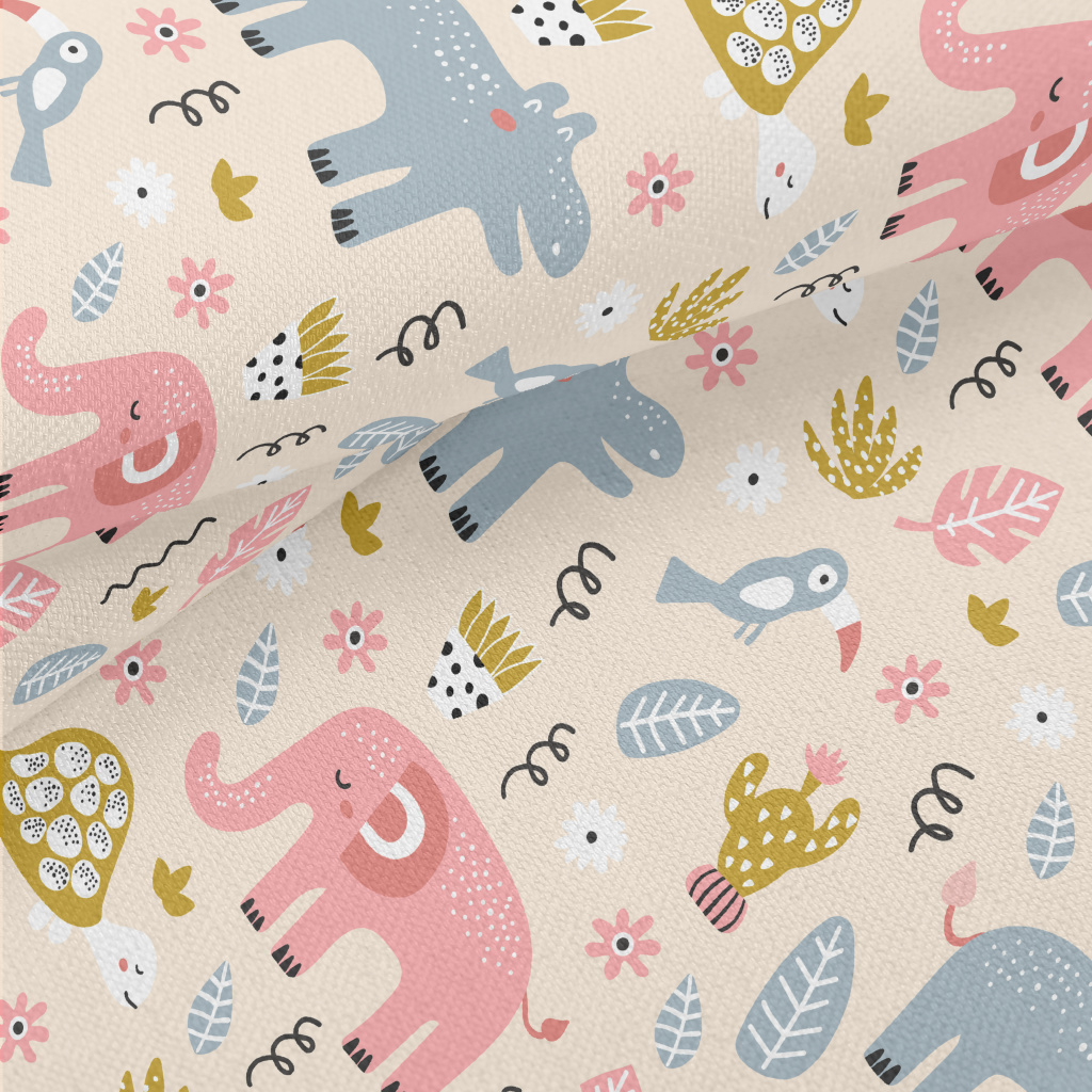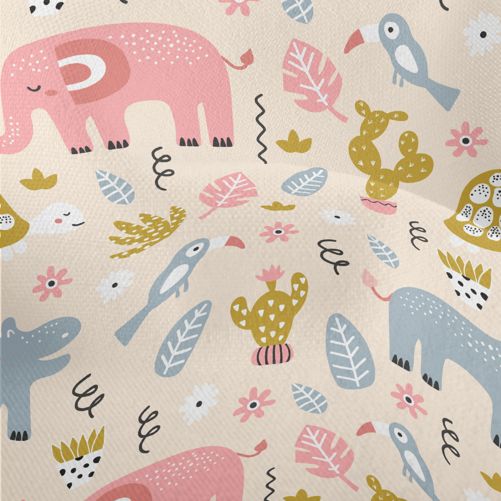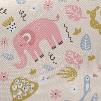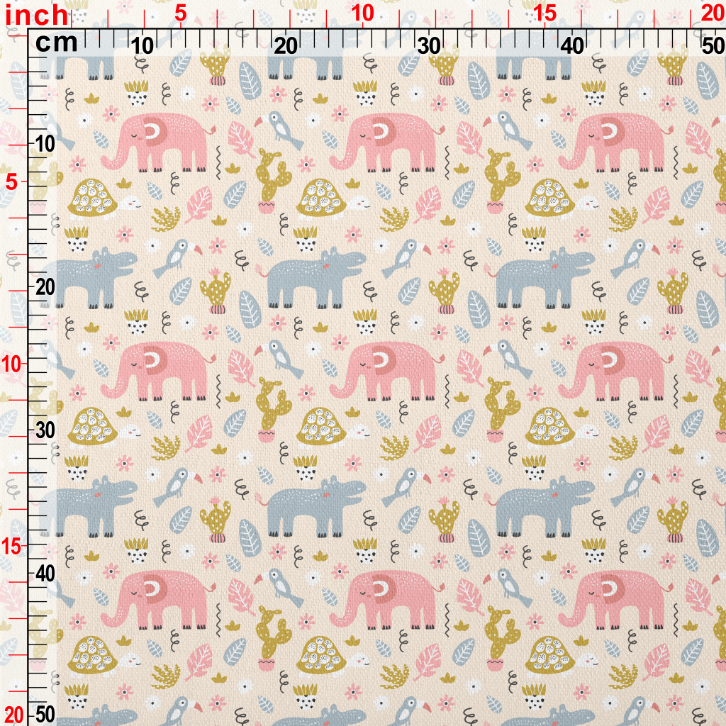 卡通烏龜大象大嘴鳥竹節麻(幅寬150公分)
