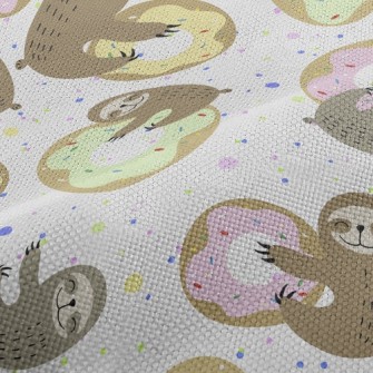 樹懶愛吃甜甜圈竹節麻(幅寬150公分)