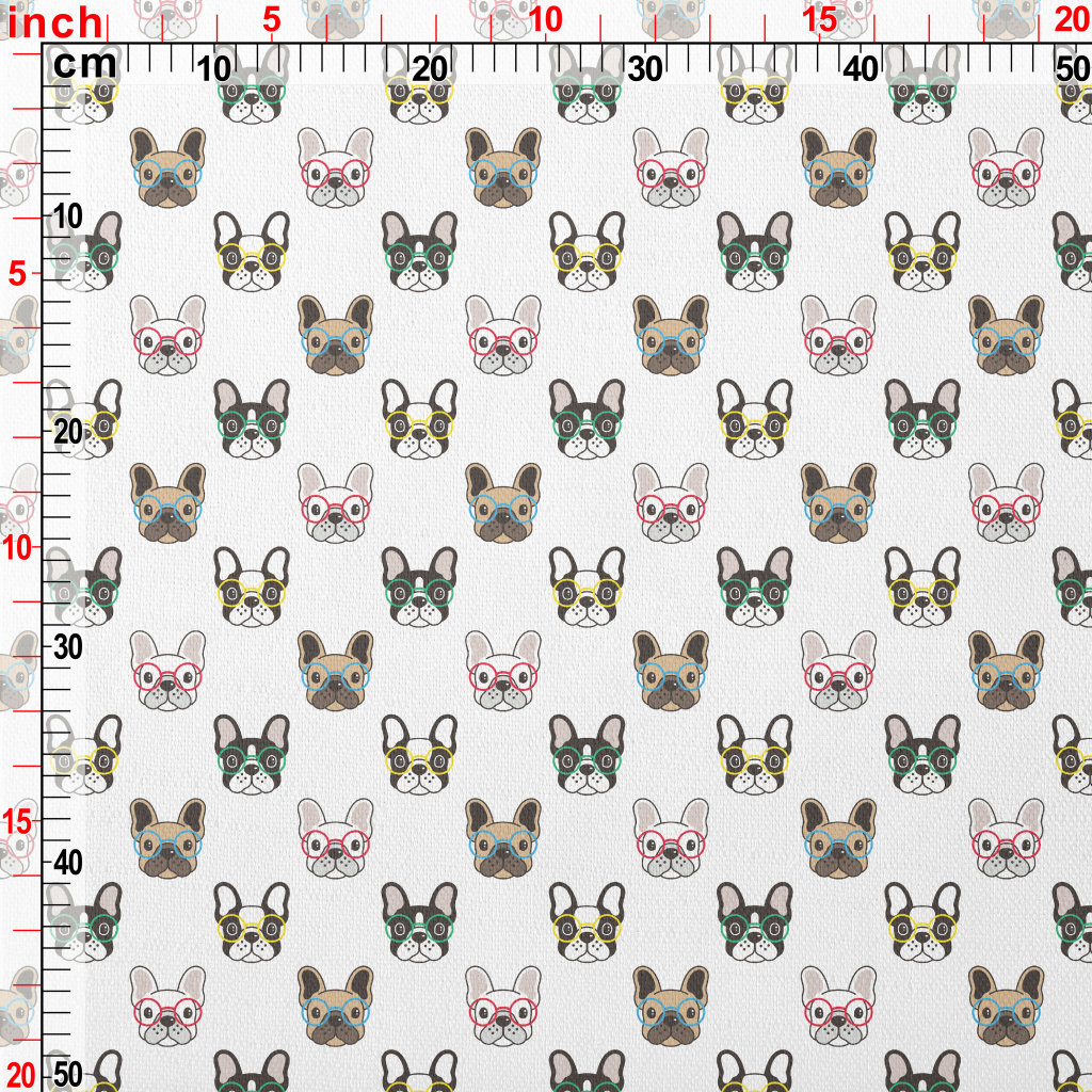 俏皮眼鏡鬥牛犬竹節麻(幅寬150公分)